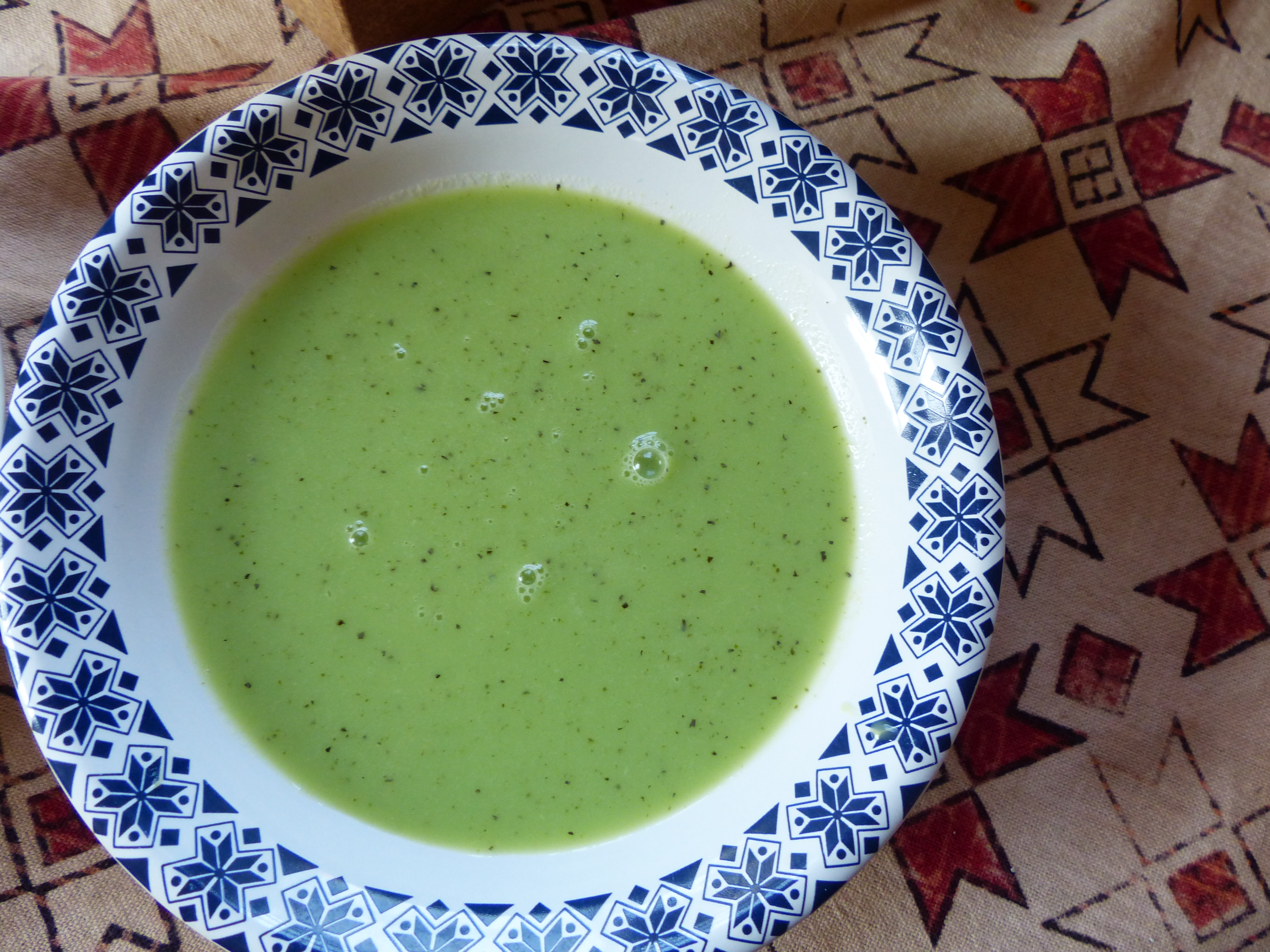 Peas are back in season in Walla Walla and you can find them at the Downtown Walla Walla Farmer’s Market this coming weekend. Normally, I focus on warm, cooked, or lightly steamed foods to help make items more readily digestible, but I experimented with this recipe during a particularly hot time last year and could not bring myself to cook with heat. I went to the internet and started hunting for a chilled pea soup recipes. I often get a recipe idea, then hunt, combine and/or modify the recipes that I find on the web. Here is my modified version. At the end of this post is a link to the original recipe that I worked with. I will be playing around with developing a warm version of this soup, so stay tuned for the warmed version in the next couple of weeks.