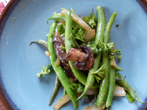 Farmer’s Market Recipes: Green bean salad with mustard dressing and a side of meatballs