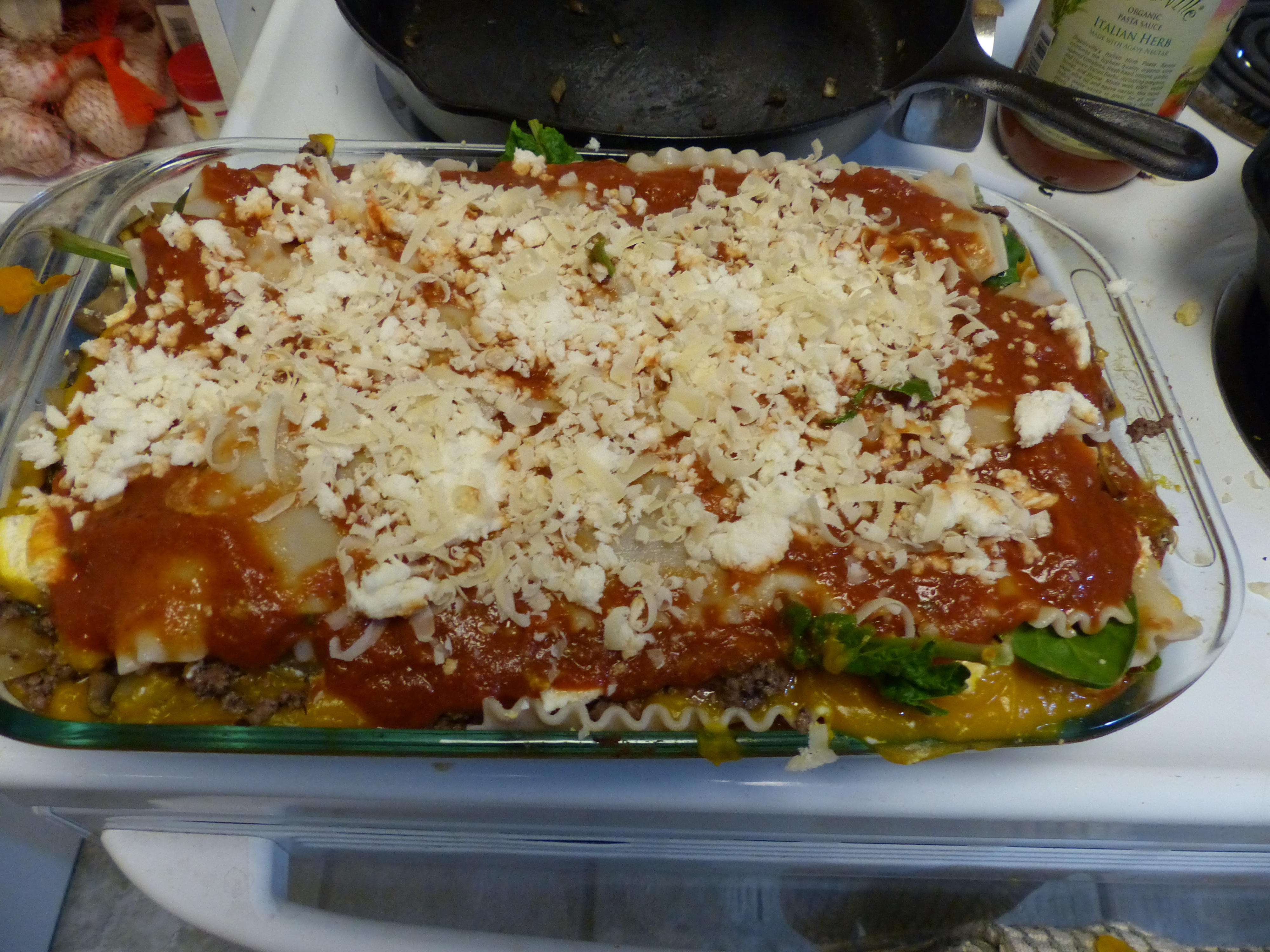 Ingredients: one packet Gluten-Free lasagna noodles One butternut, kabocha, or hubbard squash (if hubbard, you will have left over squash puree). One bunch tender kale (lacinato or young curly russian) or spinach or collard greens 8 cremini mushrooms, sliced One onion, medium chop 4-6 cloves garlic homemade or your favorite store bought marinara 1 container […]